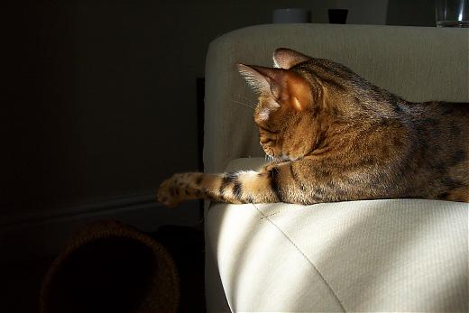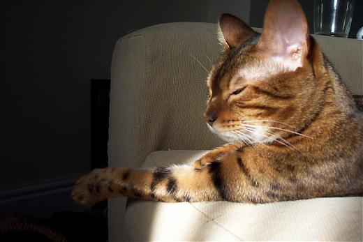 When my friends who were breeders were still here in Washington we went to all the nearby cat shows: I have always been intrigued by the wilder looking breeds: Ocicats and Egyptian Maus...frankly, got interested in Bengals after seeing Cheetah!! If I do decide, it would be a male....the three pedigreed cats I've had (Aby, Siamese, Singapura) were male (all pet quality, not interested in showing) and were more affectionate than my four moggy females. Think Leia might be threatened by another female....oh well, this is still in the thinking about stage now... thanks for the feedback!! |
